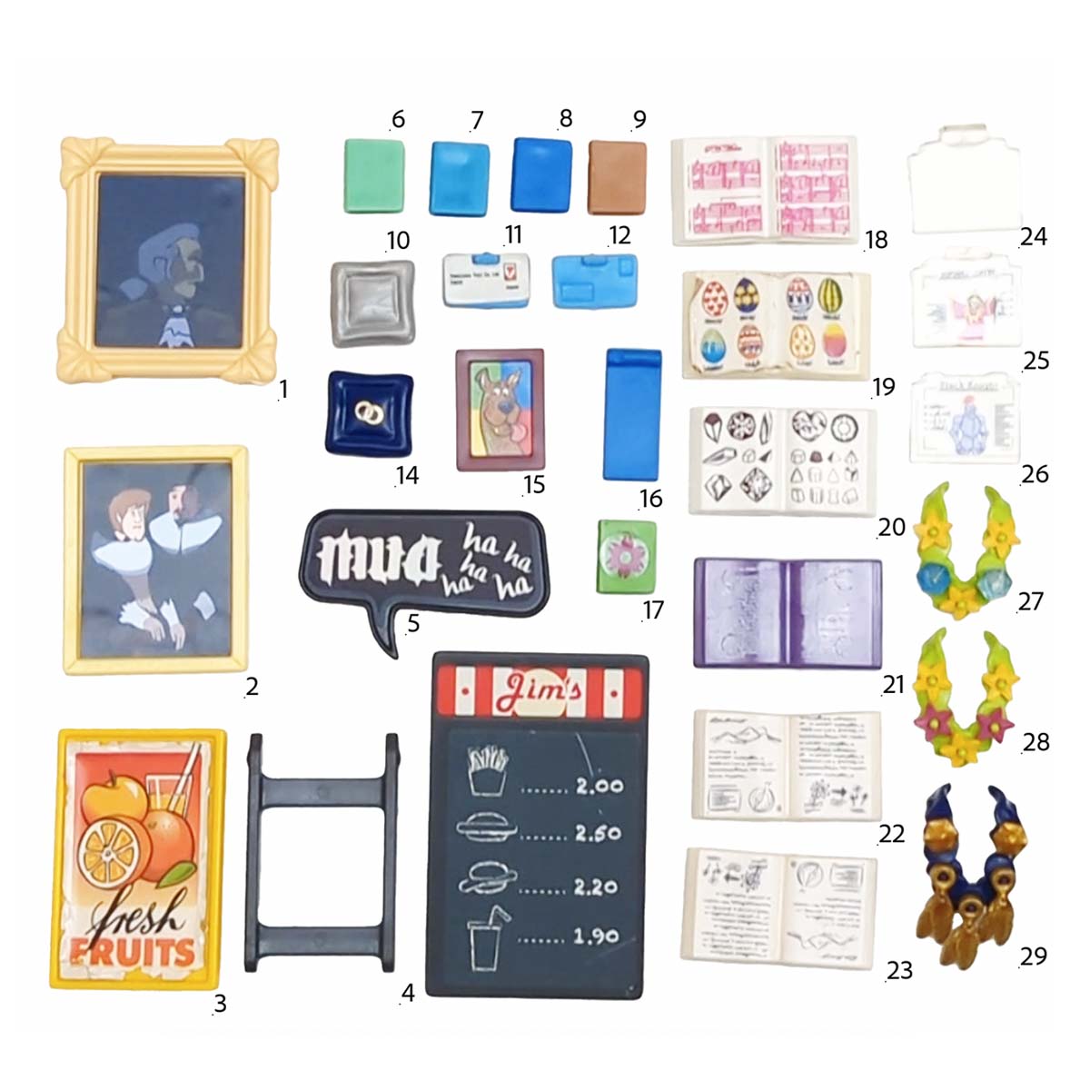 Playmobil schilderijen, posters, boeken, bordjes en juwelen