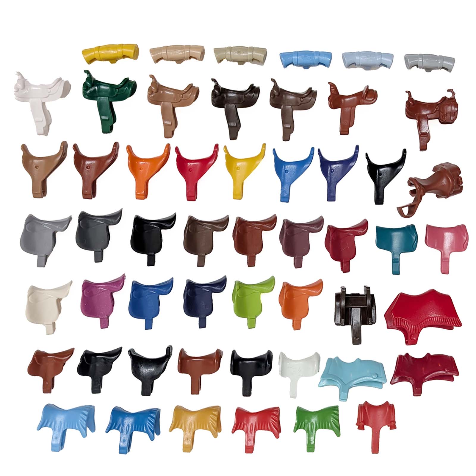 Transformeer elke Playmobil-paardrijervaring met deze enorme collectie zadels! Van western tot dressuur, en in alle kleuren van de regenboog, geef je paarden en ruiters een unieke look. Perfect voor eindeloos fantasierijk spel en om elke paardenstal compleet te maken. Zadel op en galoppeer weg!